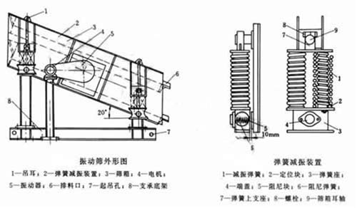 圓振動(dòng)篩由偏心式激振器、篩箱、電動(dòng)機(jī)、底座及支承裝置組成。