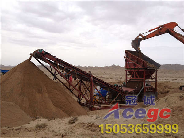 特種干選機采用挖掘機上料,廢料用輸送桿輸送走,使用于3米左右沙層,上料高度為4.5米,裝載機可以直接上料不用助坡。整機用電量為45kw左右。小時免費咨詢電話:400 9949 111 手機:15053659999 15653473333