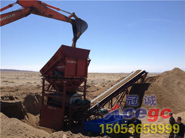 特種干選機(jī)采用挖掘機(jī)上料,廢料用輸送桿輸送走,使用于3米左右沙層,上料高度為4.5米,裝載機(jī)可以直接上料不用助坡。整機(jī)用電量為45kw左右。小時免費咨詢電話:400 9949 111 手機(jī):15053659999 15653473333