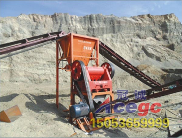 細(xì)鄂式破碎機(jī)工作方式為曲動(dòng)擠壓型,其電動(dòng)機(jī)驅(qū)動(dòng)皮帶和皮帶輪,通過偏心軸使動(dòng)鄂上下運(yùn)動(dòng),當(dāng)動(dòng)顎下行時(shí),肘板與動(dòng)顎夾角變小,動(dòng)顎板在拉桿,彈簧的作用下,離開固定顎板,此時(shí)已破碎物料從破碎腔下口排出。當(dāng)動(dòng)顎上升時(shí)肘板與動(dòng)顎間夾角變大,從而推動(dòng)動(dòng)顎板向固定顎板接近,與其同時(shí)物料被壓碎或劈碎,達(dá)到破碎的目的;隨著電動(dòng)機(jī)連續(xù)轉(zhuǎn)動(dòng)而破碎機(jī)動(dòng)顎作周期運(yùn)動(dòng)壓碎和排泄物料,實(shí)現(xiàn)批量生產(chǎn)。